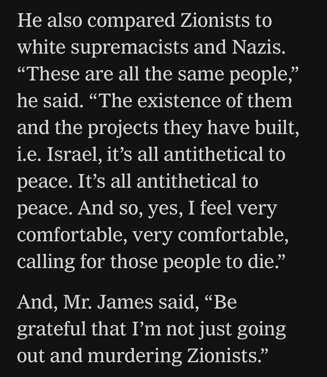 Example (from one of the protest leaders at Columbia): âI feel very comfortable calling for _____ to die. Be grateful that Iâm not just going out and murdering ______.â